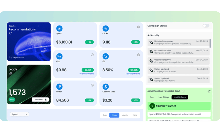 Shift spend between Meta, Google, TikTok, Snapchat, and more, prioritize high-performing campaigns, reallocates budget based on real-time performance